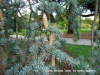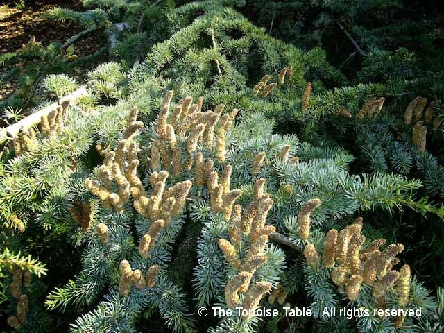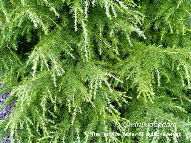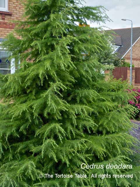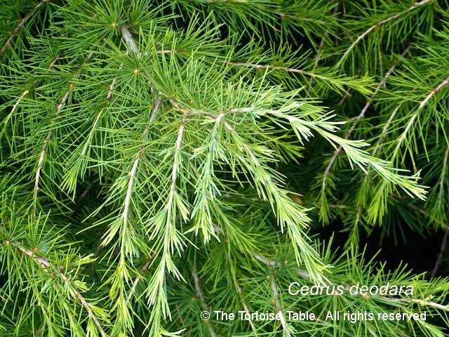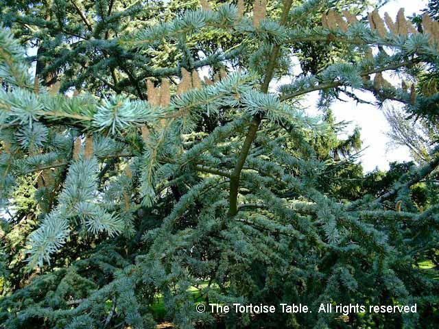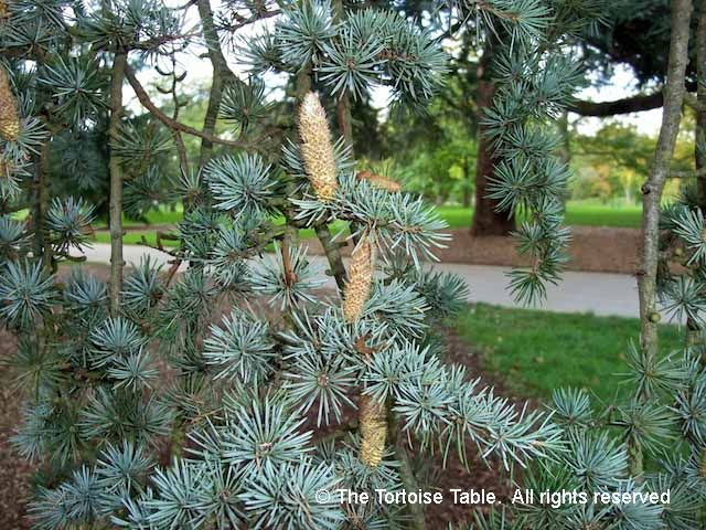 The highly scented needles of the Cedar contain tannins, making them quite bitter to the taste, and whole tree contains a volatile oil which can cause mouth, throat and stomach irritation if ingested. Cedar isn't one to have where the tortoises could nibble on fallen needles.