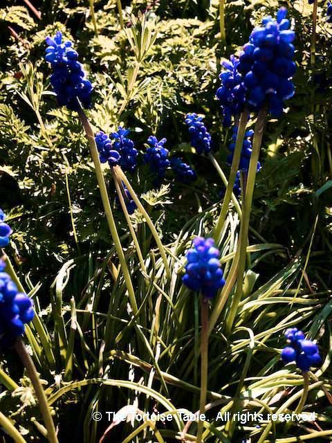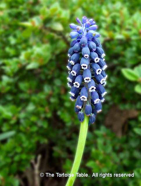 The bulb of the grape hyacinth contains comisic acid, which acts on the body like the toxin saponin and can cause diarrhoea and sickness. It should not be fed to tortoises or grown in their enclosures. Although primarily grown as a cultivated garden plant, in some areas it has escaped and is found in the wild. See Hyacinth.