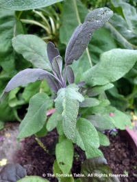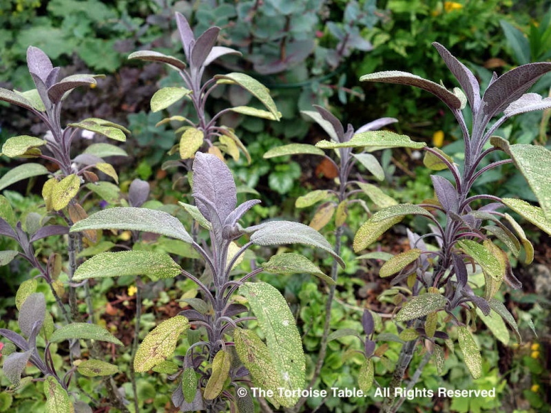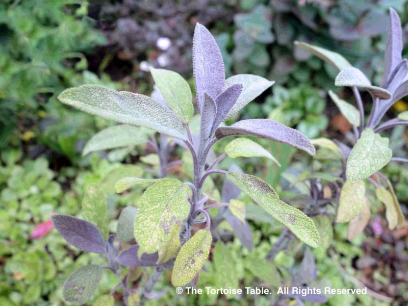 There are no known hazards to the culinary sage, Salvia officinalis (Common Sage, Garden Sage, Purple Sage). Sage can be offered in moderation, but because of the strong aroma and taste, your tortoise might not find it appetising.