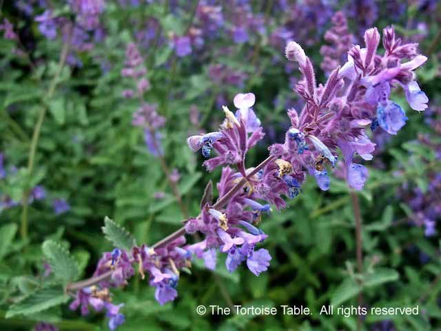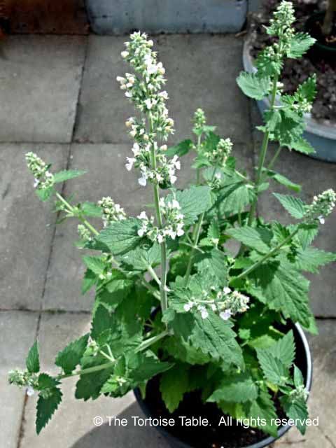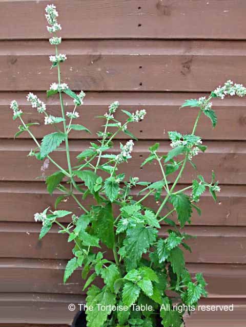Catnip contains nepetalactone, a terpene that acts as a hallucinogen in cats, but is often said to have no effect on other animals. However, we have found that it can cause drowsiness and disorientation in birds, and although there is no record of its effect on reptiles, we feel it would be best to avoid either feeding this plant to tortoises or planting it in the enclosure.
