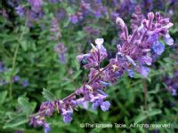 Catmint can be identified by the pungent smell of the leaves and the small purple dots inside the flower.