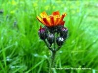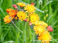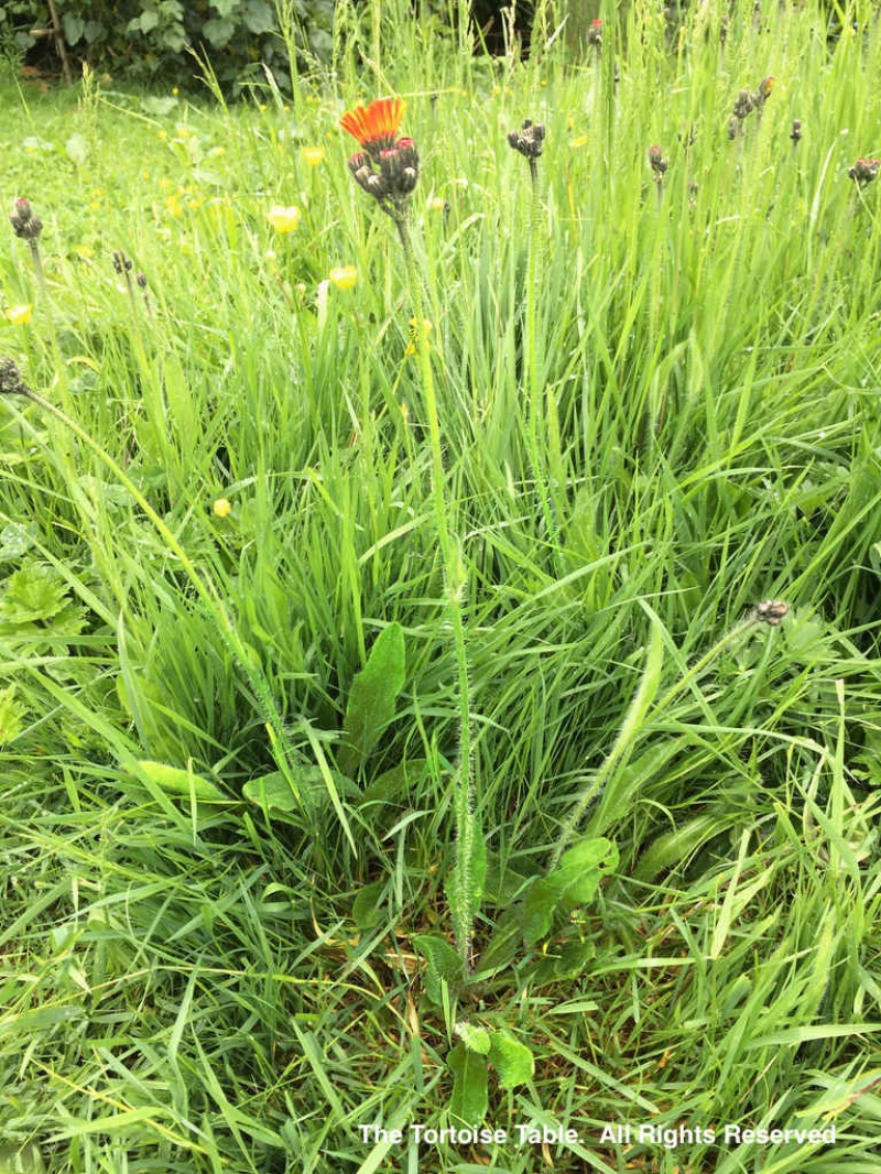 There are thousands of species of Hawkweeds, but the Fox and Cubs is among the most common. There are no known hazards of Hawkweeds, but it is best to feed mature plants only as part of a varied diet, when the protein content is low and the fibre high. The flower is almost always orange, but there is a yellow variety.