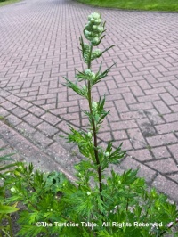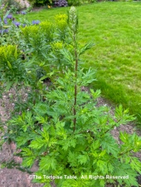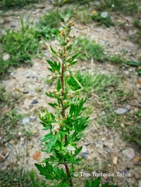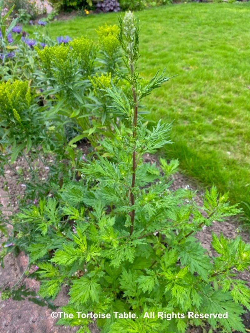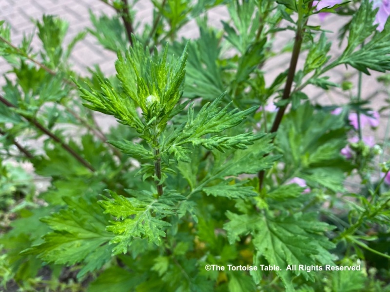 The toxic chemical in Mugwort is thujone, which inhibits particular receptors in the brain. Thujone is best known as the active component of the drink absinthe (an alcoholic drink made with wormwood oil from Artemesia absinthium), and if taken in quantity in can cause fits, hallucinations, and psychoses in humans. This plant should not be fed to tortoises.