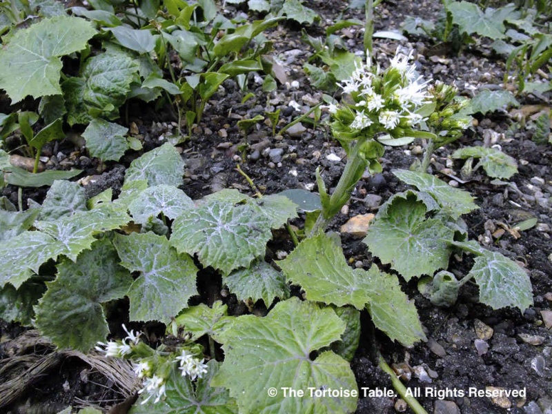 Butterbur contains pyrrolizidine alkaloids in all parts of the plant, and although it is more concentrated in the rhizomes and stem, the leaves and flowers contain it too. These alkaloids can cause serious damage to the liver, so avoid feeding this to tortoises.